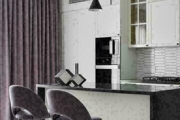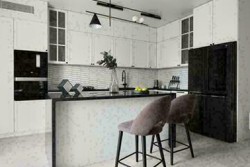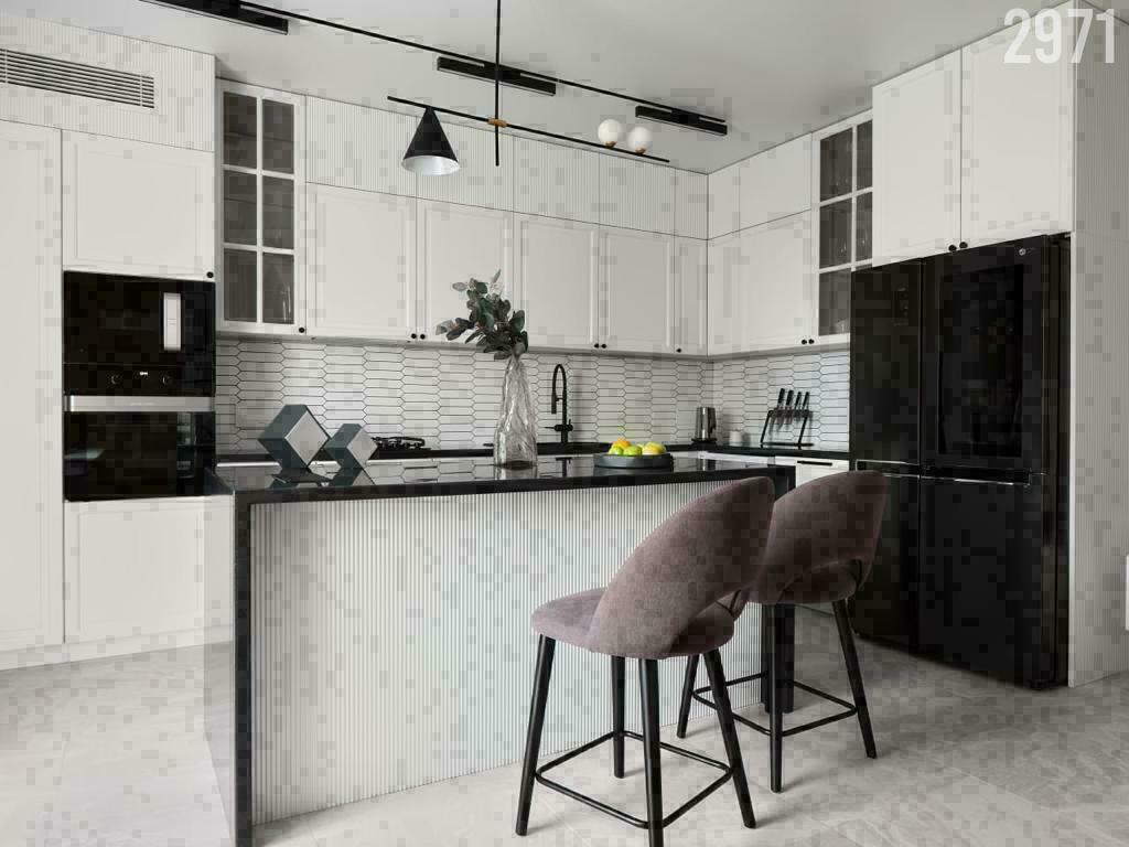 Бытовая техника, мебель и строительный материал премиум класса: Встраиваемые духовой шкаф, микроволновая печь, варочная поверхность - Словенская фирма Gorenje. Холодильник side-by-side, стиральная машина - фирма LG. Испанская керамическая плитка- Arrow, Equipe; Agatha, Kerlife, Fontana, Azteca (салон Реставрация). Корпусная мебель, стеновые панели - изготовлены по дизайн проекту фирмой MoSSt. Встроенное трековое освещение Arlight, светильники Led Group. Мягкая мебель изготовлена по дизайн проекту компанией Sofa_krd. Пол - инженерная доска «Дуб Ланкастер».