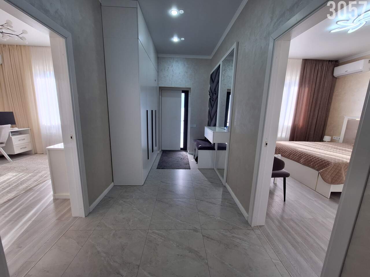 Продаётся: Уютный дом 105 кв.м на участке 5 соток. В доме воплощены самые передовые инженерные решения для безупречной службы на долгие года для вашего удобства. Дом новый, построен в 2024 году с соблюдением всех технологических норм. Выполнена качественная отделка из современных материалов. Дизайн внутренних помещений выдержан в светло-серых бежевых и белых тонах. Система отопления газовое автономное, зоны теплого пола в (кухня гостинная, санузел, прихожая), в комнатах также установлены современные радиаторы отопления. Во всех комнатах имеются сплит-системы, продумана до мелочей организация всего пространства в доме. Дом продается с мебелью и техникой. Приходите на просмотр и убедитесь, что все в этом доме удовлетворяет требованиям современной жизни!