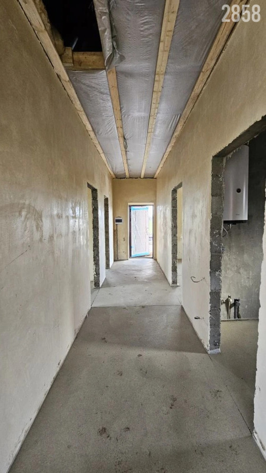 Планировка: Общая площадь 117 кв.м. Просторная кухня гостиная с выходом на террасу, три спальни, санузел, веранда с навесом. Дом продается в идеальной предчистовой отделке, радиаторы, газовый котел, теплый пол. Дом очень теплый, при строительстве использовались качественные материалы.