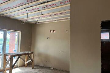 Планировка: Дом построен из кирпича. Первый этаж площадью 90 кв.м. На нем 3 комнаты , большая кухня-гостинная гостинная и совмещенный сан.узел. Второй этаж свободной планировки площадью 30 кв.м. Строительство дома выполнено из качественных строительных материалов.