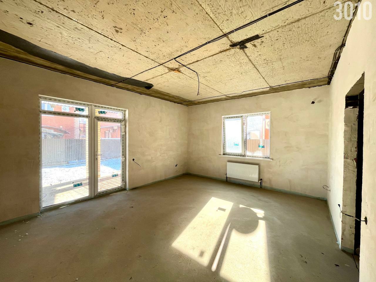 Планировка: В доме кухня-гостиная с выходом на террасу 20 м2, три спальни, раздельный 2 сан.узла. В доме будет сделана предчистовая отделка, разводка отопления, радиаторы, теплый пол по всему дому, установлен газовый котел.