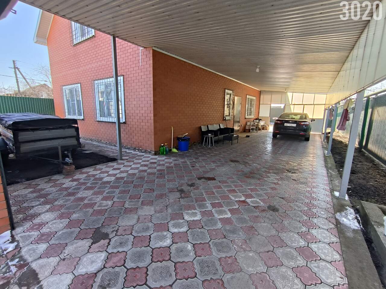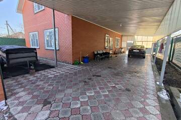 Земельный участок:4,5 сот. фасад 15 м, прямоугольной формы. Весь участок огорожен забором. Заезд под несколько авто, хороший навес. Двор забетонирован и выложен плиткой.