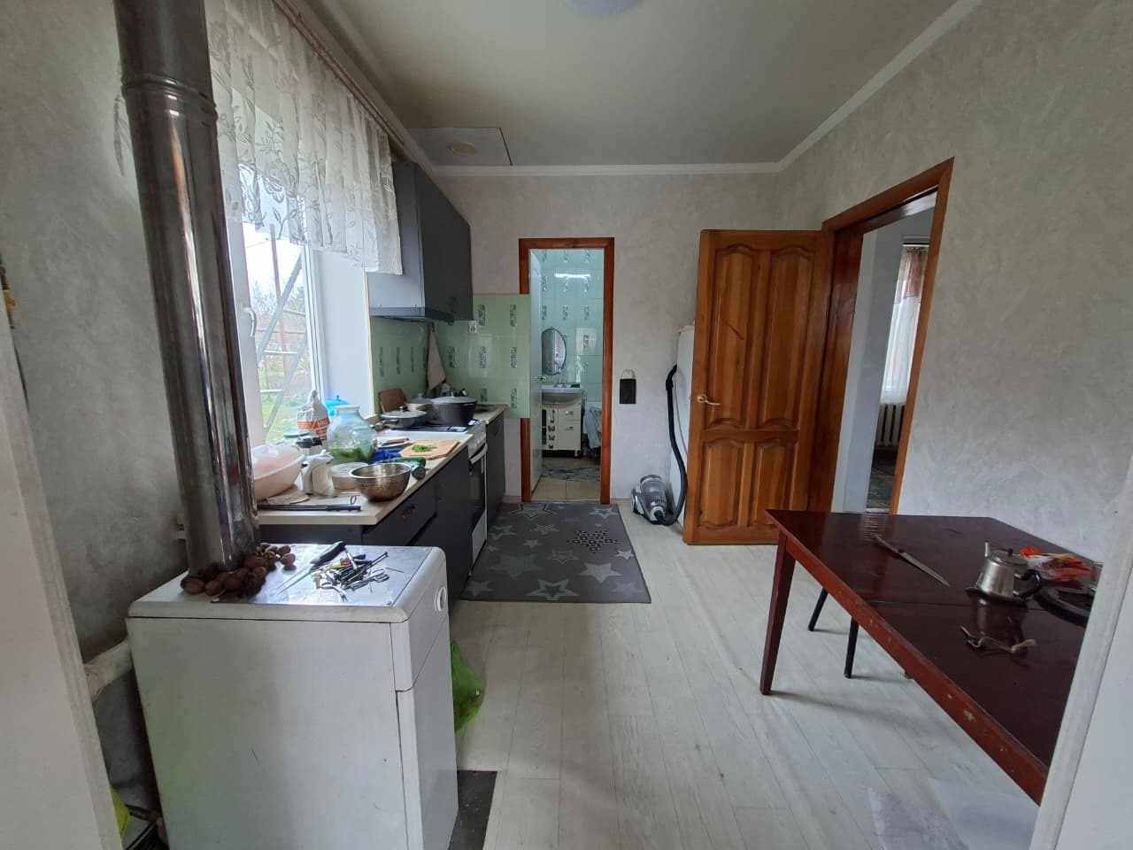 Планировка: В первом доме 3 комнаты, кухня и санузел.