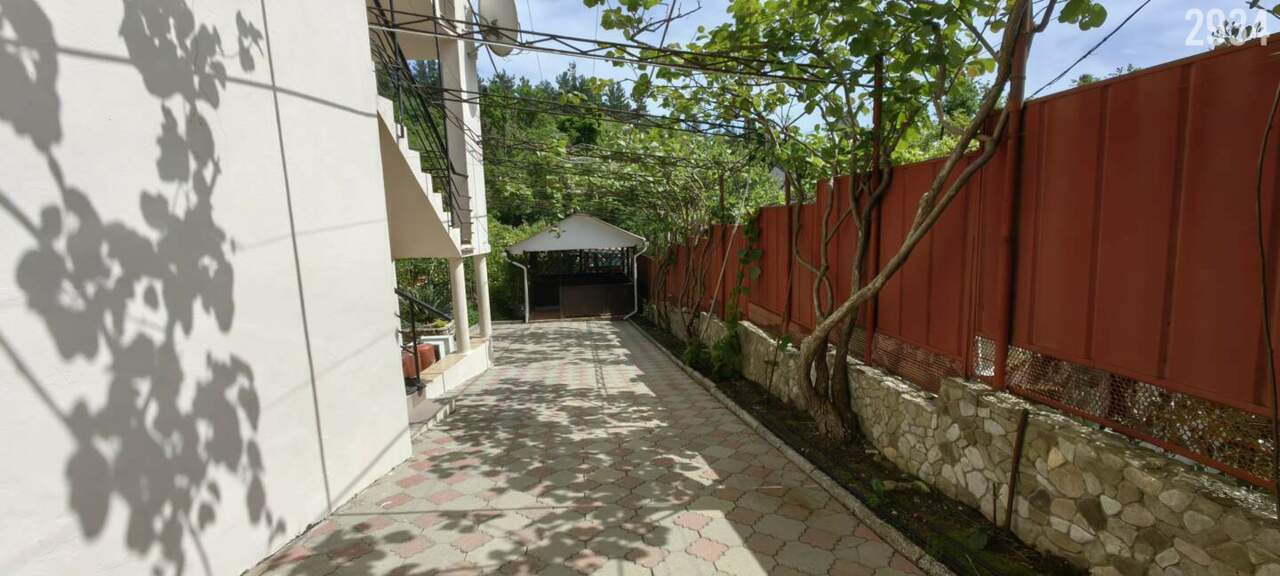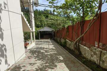 Территория: гостевые беседки, 2 бассейна (детский и взрослый), бильярдная, баня, мангальная зона, детская площадка, кухня-столовая, парковка для авто. Очень много зелени, фруктовых и декоративных растений (киви, хурма, банан).
