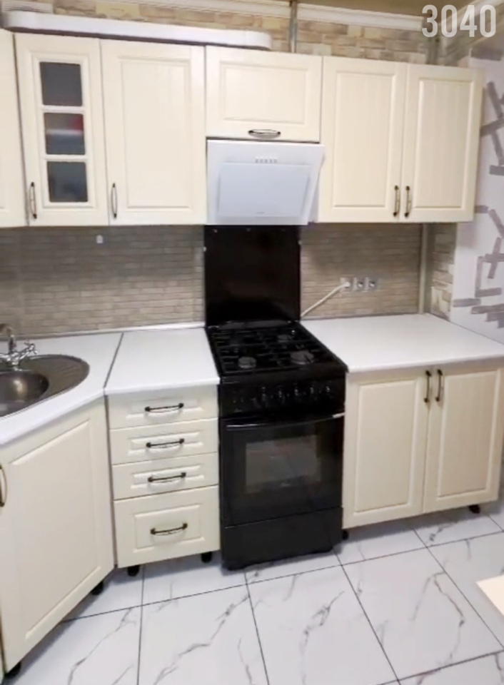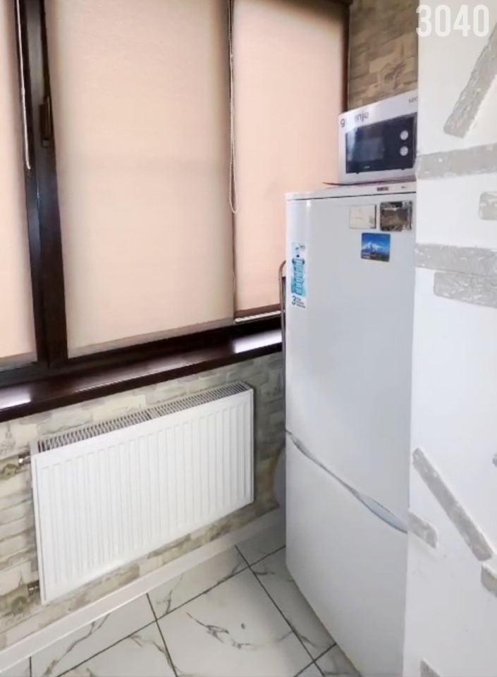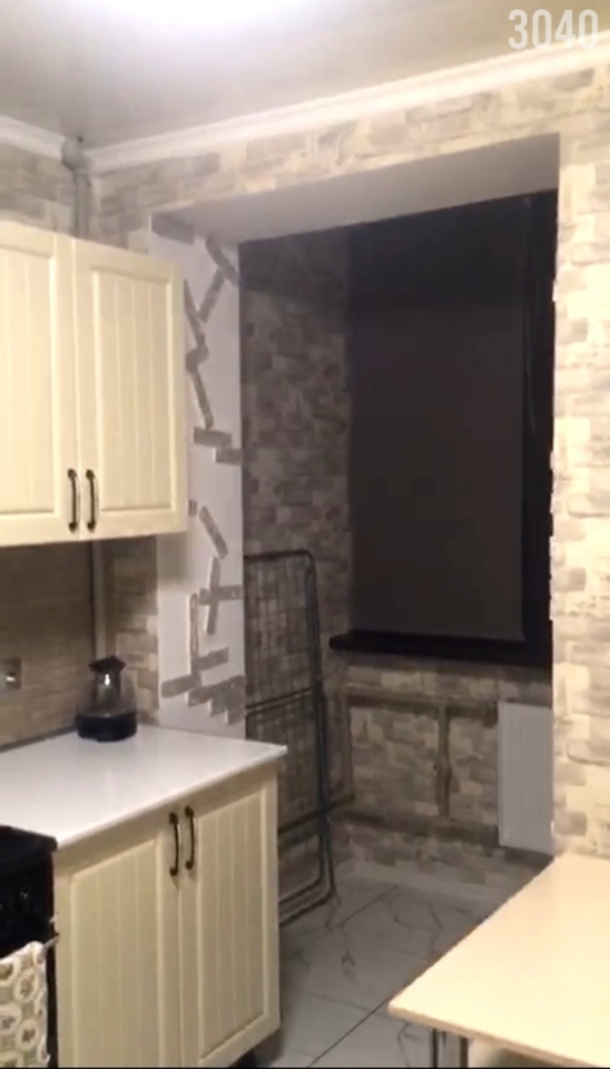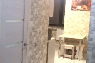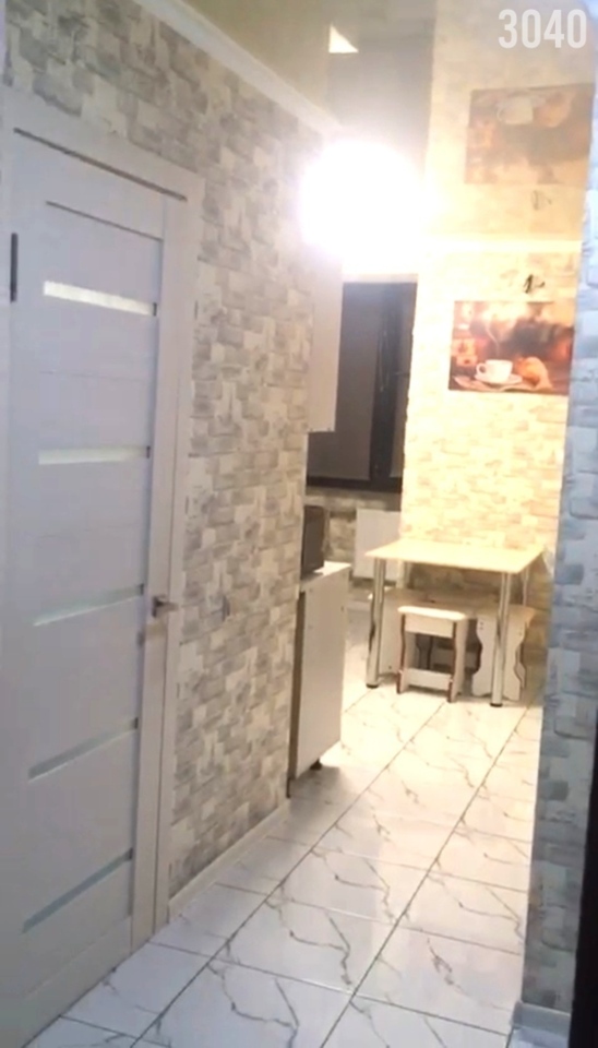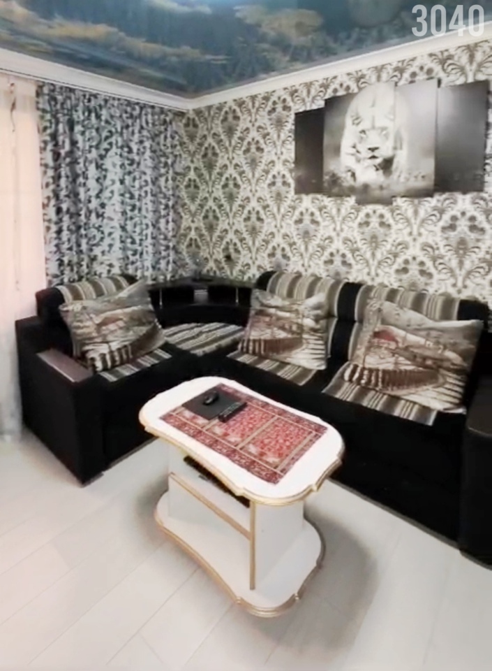 Планировка: Общая площадь 33 кв.м. комната разделена на две зоны: спальная комната и гостиная где стоит диван и телевизор, кухня 7.8 кв.м, совместный санузел. Квартира находится на 1-м этаже много этажного дома.