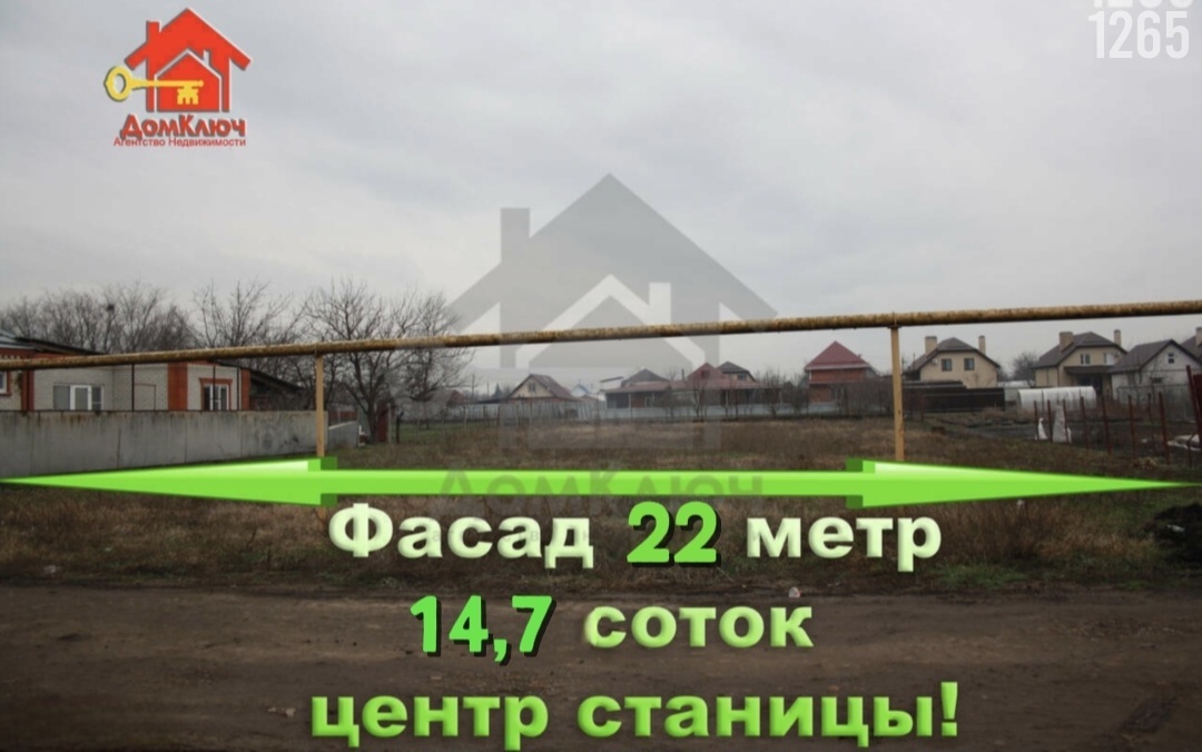 Продаётся: Земельный участок 14,7 соток в ст. Нововеличковской. Фасад 22 метра. Участок чистый от строений.